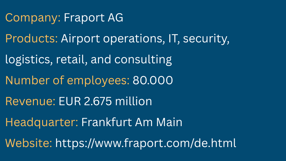 Fraport is one of the world's leading airport management companies and operates Frankfurt Airport, one of Europe's largest airports, among others. The company stands for efficiency, innovation, and futureoriented infrastructure in international air traffic. To meet the increasing demands of airport operations, Fraport relies on digital solutions and clean data processes. Projects to optimize master data quality and digitize business processes form the basis for sustainable success and smooth operations.